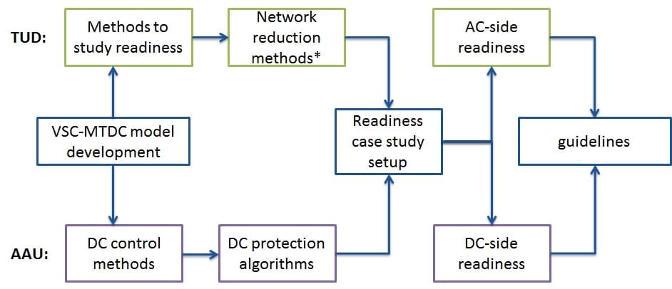 This research project will mainly focus on the DC-side impact of COBRAcable link expansion, while its influence to the existing AC networks will be studied by a PhD student at Delft University of Technology (TUD). This research project includes the review of the state of the art, VSC-HVDC model development, development of converters coordination method and DC fault studies. A collaboration work with TUD will be established during development of the VSC-HVDC model and study cases for testing the methods developed in this project. Industry collaboration with Energinet.dk and TenneT will also be considered and transfer of knowledge among academias and industries by the means of papers, workshops or patents is expected throughout the project period. In the end, this research project will provide guidelines for future connections of converter to COBRAcable towards efficient, highly reliable, secure, and flexible MTDC transmission system.