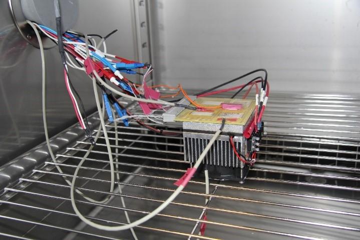 The heating and cooling stages, which can be placed inside the chamber, allow simulation of condensing and evaporation conditions with capability of in-situ evaluation of the water film formation on the surface. The climatic chambers at CELORR are equipped with Electrochemical measurement system, therefore able to characterize the PCBA test structures required under DC or AC bias conditions.
