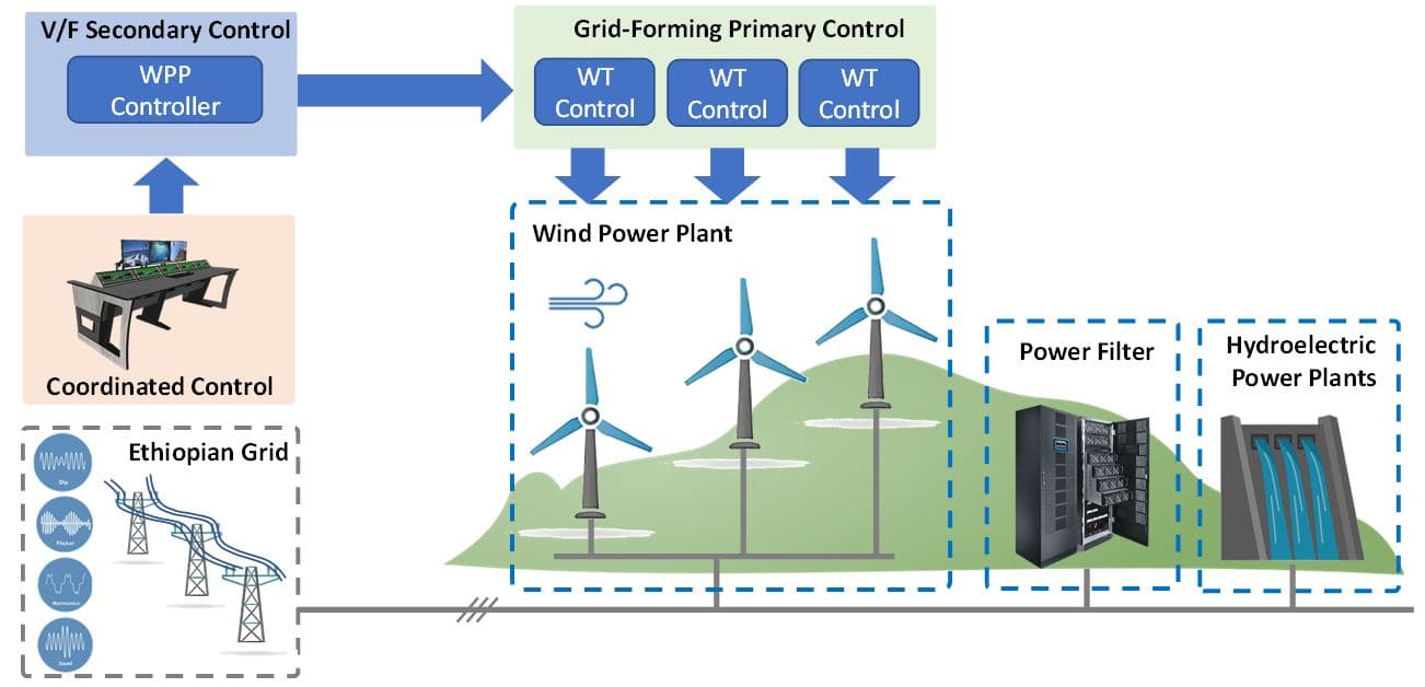 LastWind aims at assessing and proposing novel solutions to the large-scale integration of WPPs into the Ethiopian grid, in order to achieve unprecedented levels of wind power penetration while endowing to the grid stability, robustness, and flexibility. The scope of LastWind is control, modelling, stability analysis, and power quality enhancement of large integration of WPPs to maximize the power supply mix into the Ethiopian power grid in a secure and reliable manner. LastWind will propose and develop planning tools, grid-forming controllers for WPPs and their ancillary services, modelling for stability analysis, harmonics and resonance mitigation solutions, and coordinated control strategies. The research outcomes will be based in real data from the Ethiopian power system and meteorological agencies, such that the findings will impact the Ethiopian energy sector and provide worthwhile information for the renewable energy road map of Ethiopia and all decision makers and stakeholders, including energy authorities, electrical grid operator, and potential investors. Moreover, LastWind will give an impetus to applied research for both Ethiopian and Danish partner universities and therefore will result in technical resource development in the area of wind-power coordination, integration, and management.