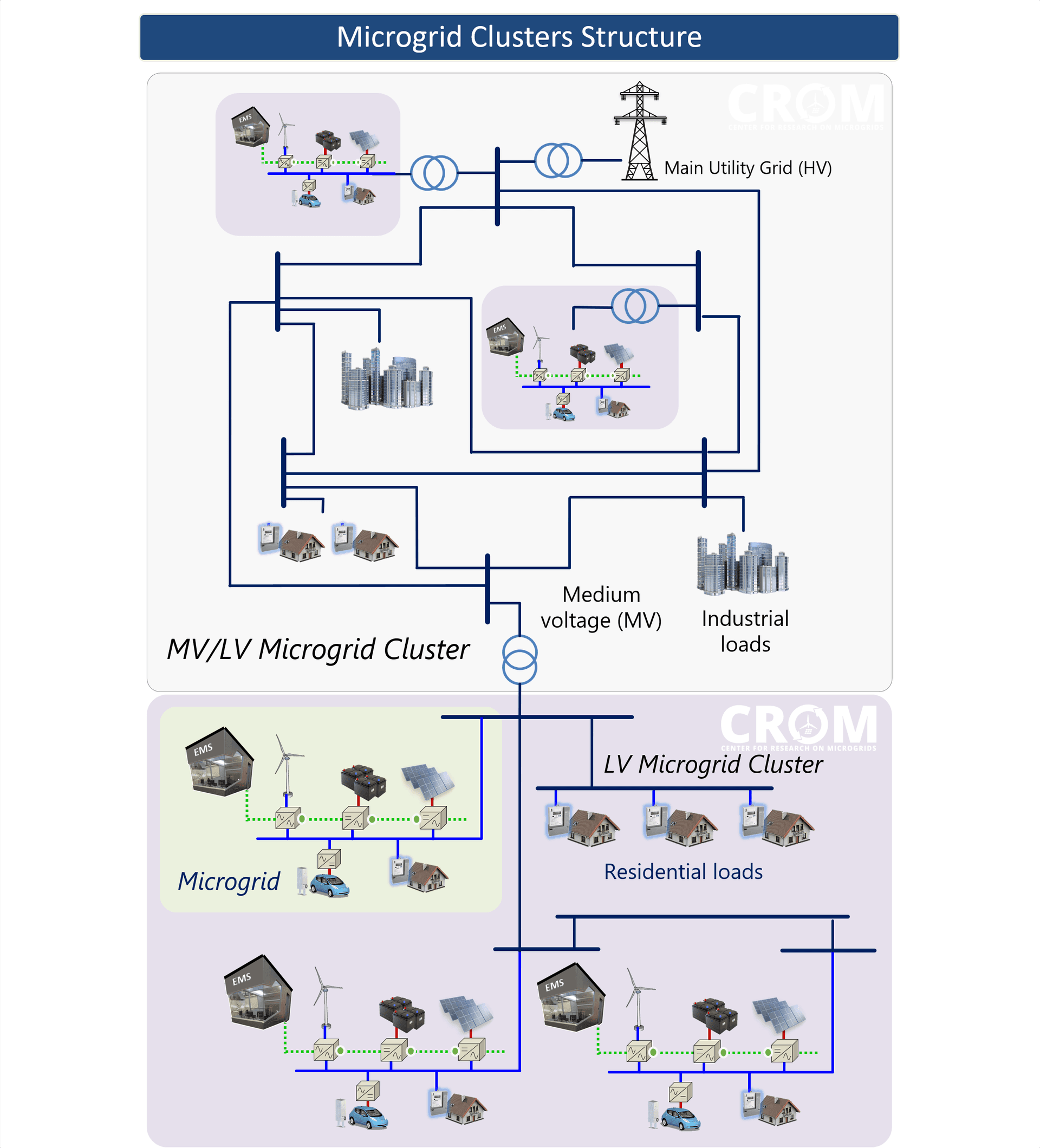 As a result, there is a clear gap between the microgrid concept and its potential as a decisive role in the new smart grid paradigm, allowing further investigation and proposal of ideas to embrace both concepts. Therefore, CROM proposes a bottom-up approach in order to conceive future smart grids from the interconnection of multiple microgrids.