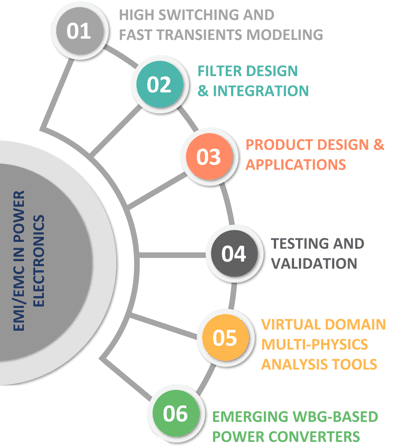 - Virtual domain multi-physics analysis tools for harmonic and EMI modeling, control and mitigation in power electronics (2kHz – 150kHz, >150kHz)